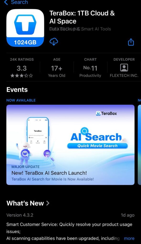 TeraBox is now on your iPhone, ready to safely store all your important files.
